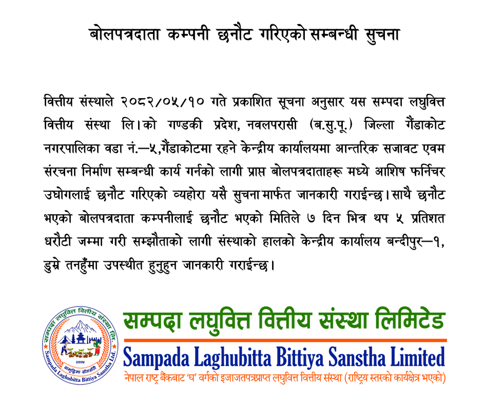 बोलपत्रदाता कम्पनी छनौट गरिएको सम्बन्धी सुचना