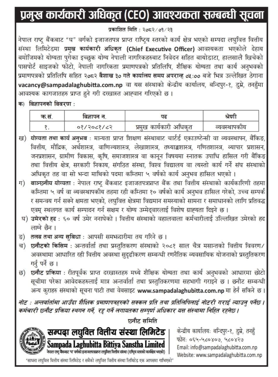 Vacancy for the post of CEO